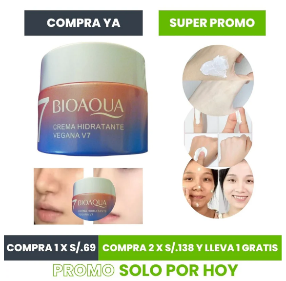 Nuestra crema BioAqua V7 proporciona hidratación intensa y aclara tu piel al mismo tiempo. Imagina despertar cada día con un rostro luminoso y sin manchas!